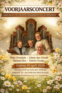 Orgelconcert op 10 april 20.00 uur in de Bethelkerk